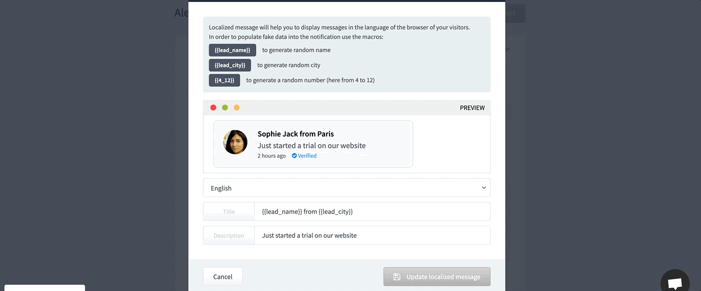 Generate and display notifications on your website by installing a widget to show random messages to your visitors. This will increase your sales and credibility.